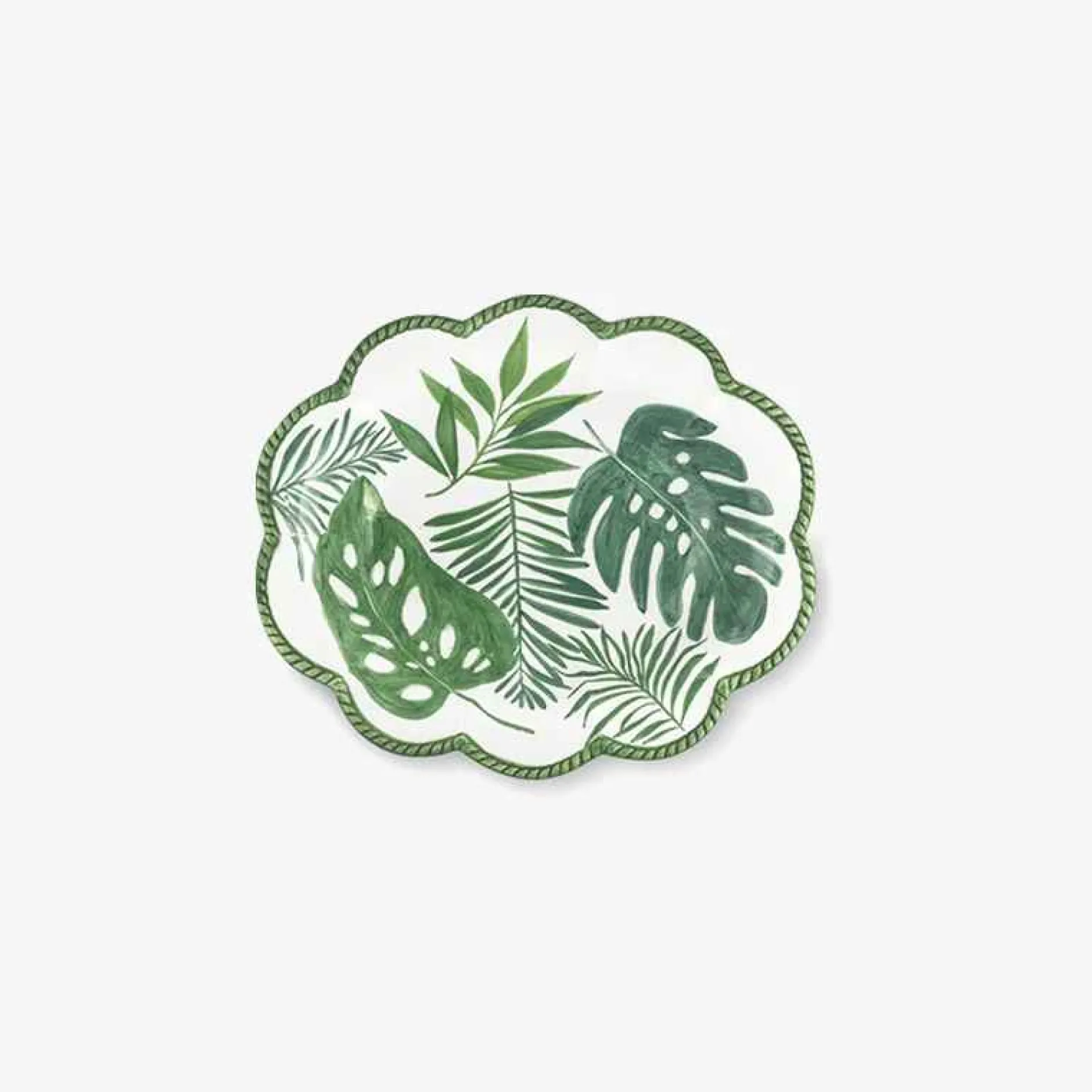 The Garden Collection Displays Its Distinctive Design Made Up Of Big Leaves And Ferns. Every Piece Is Hand-Painted On Ceramic With The Greatest Care. Green Is The Dominant Color Of Each Composition, Which Borders And Perfectly Fills In The Hand Made Ceramics.
