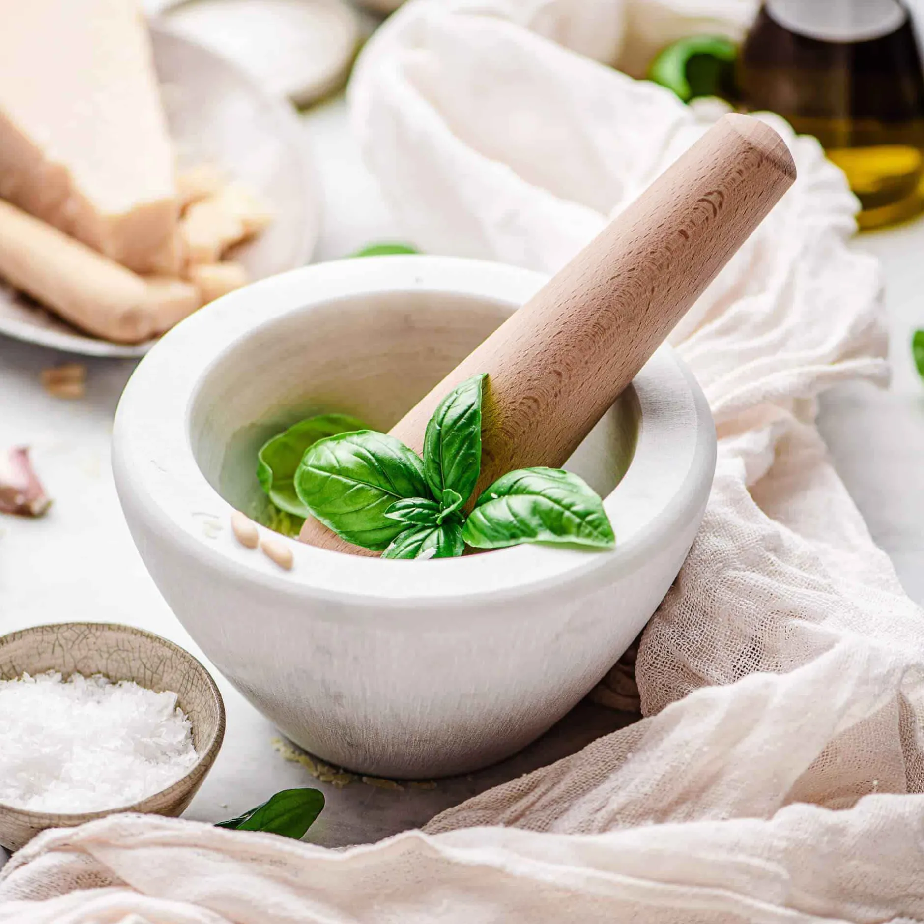 Marmolove The Itlalian Dream Mortar Was Born Out Of The Idea That The Heart Of Our Grandmothers Is Full Of Love. And This Is The Secret Ingredient That They Put Into All The Delicious Delicacies They Prepare, But To Make Pesto ‘The Traditional Way’ They Need The Perfect Helper. Made With White Carrara Marble, An Ideal Material That Lends Itself Perfectly, Both From A Culinary And Visual Point Of View, With Its Veins And Its Porosity. Wood Was Specifically Chosen As A Pestle Material, To Adhere Perfectly To The Hand And Not Slip. The Pestle Is Made By Fratelli Levaggi , Skilled Wood Artisans Who Make The Authentic Chiavarina ® Chair Respecting The Traditional Method And Materials. Every Marmolove® Is A One-Of-A-Kind Original Handmade Piece.